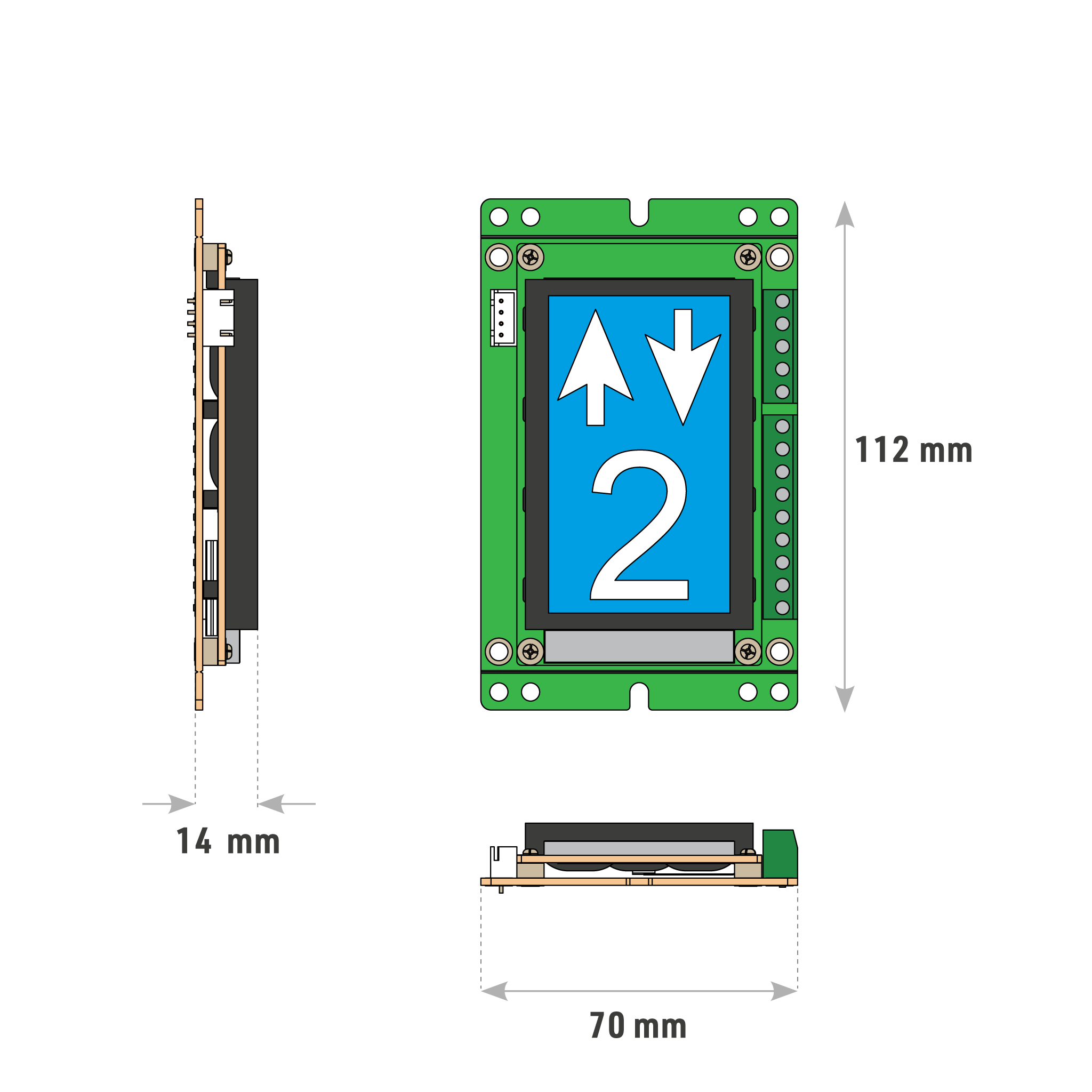 Programmable graphic LCD is suitable for any landing or car operator panel. Customizable display makes it the best choice for any elevator.